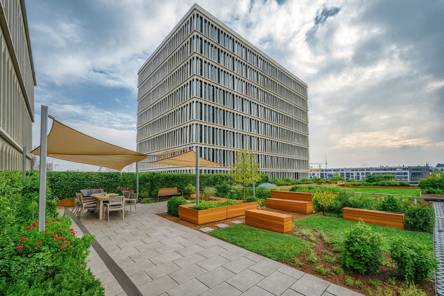 Exclusive terraces as green oases for airing out, relaxing, and recharging your batteries for fresh ideas and greater well-being in your everyday working life